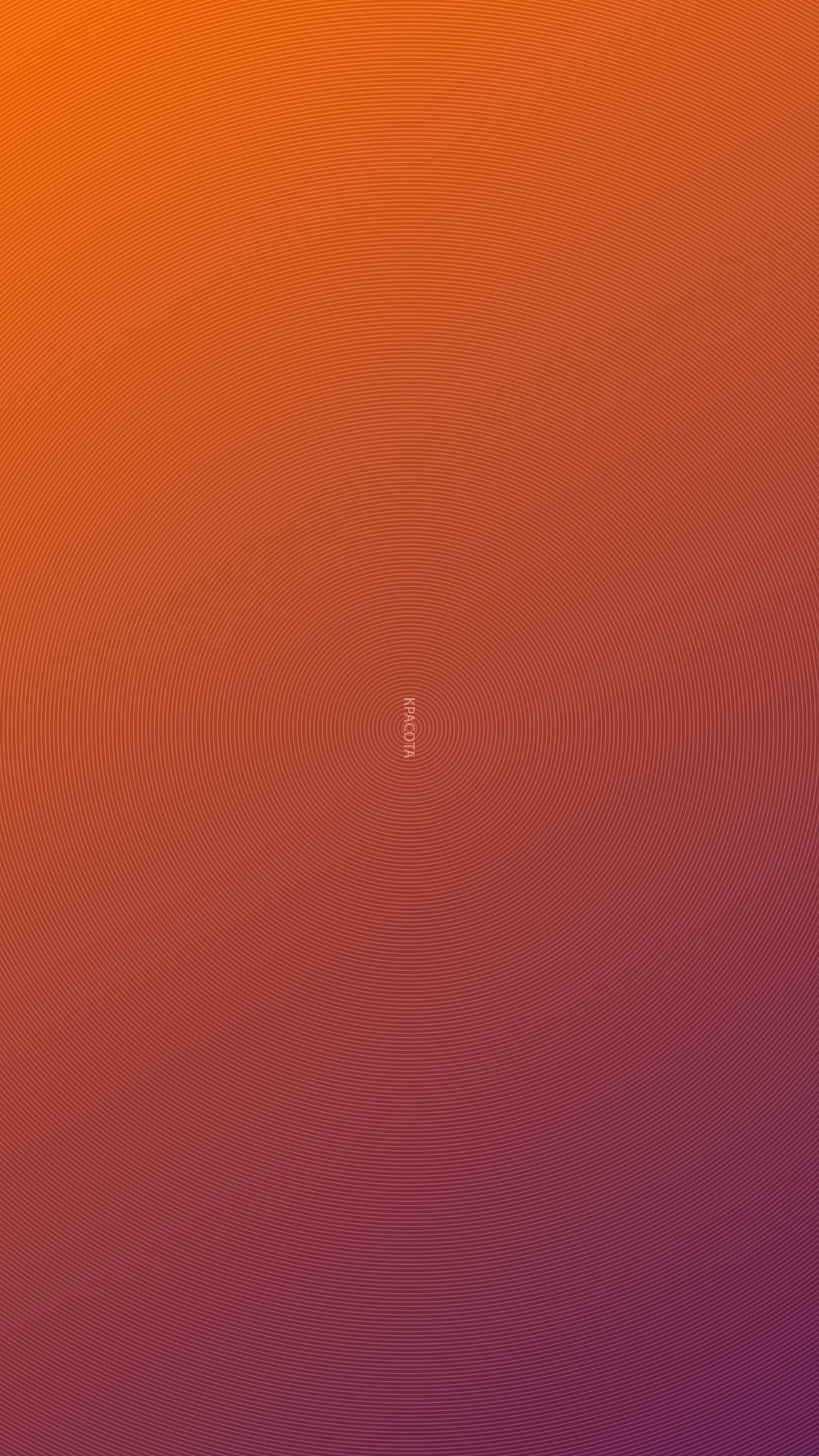 Полотно представляет собой равномерную, но одновременно пульсирующую текстуру, возникающую за счёт концентрических линий, растворяющихся в глубине цветового градиента. Градиентная плоскость переливается от тёплого оранжевого к насыщенному пурпурному, создавая эффект вибрации и погружения. В центре композиции — слово «КРАСОТА», превращающееся в оптическую точку сборки всей визуальной структуры.